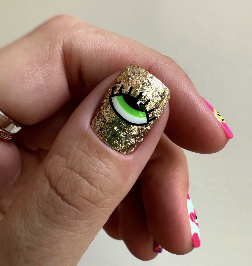 Conseil: les flocons sont hyper fins et se collent entre eux, pour obtenir la superficiel lisse prenez toute petite quantité du paint et étaler bien sur l’ongle.