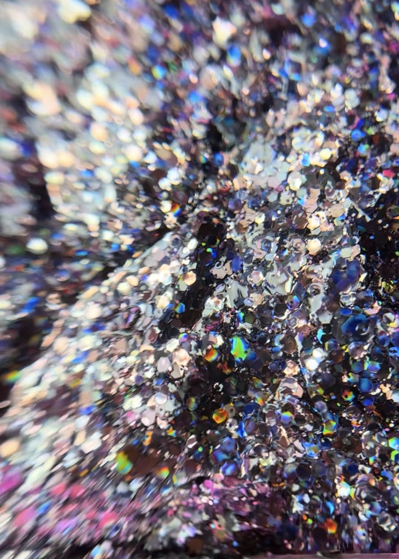 Collection des paillettes assorties. Mix de taille, des formes et des couleurs. Vous pouvez couvrir l'ongle entièrement ou utiliser les petits fragments séparément. Le gel a une haute concentration des paillettes, ce que est très économique dans l’utilisation.