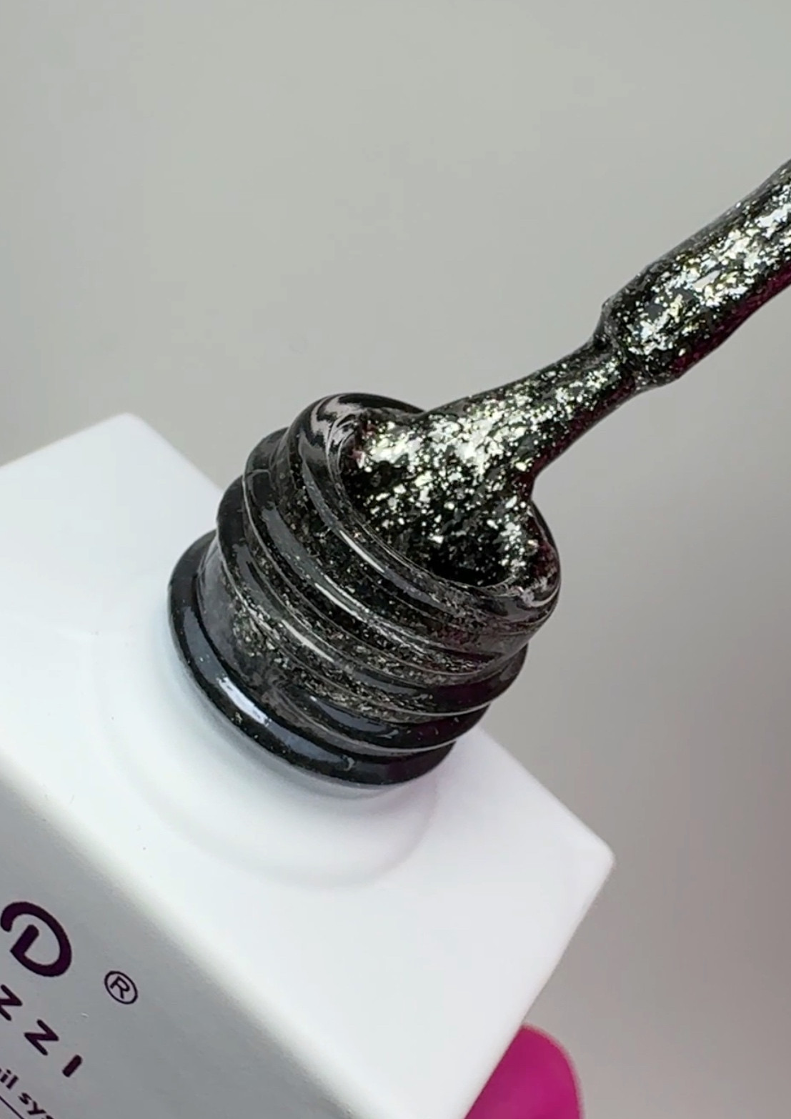 Appliquez le vernis UV Top Dry Long Life gloss de Dazzi Nails en fine couche pour sceller la couleur, faites un petit renforcement avec une petite goutte si nécessaire, et laissez polymériser sous lumière LED / UV.
