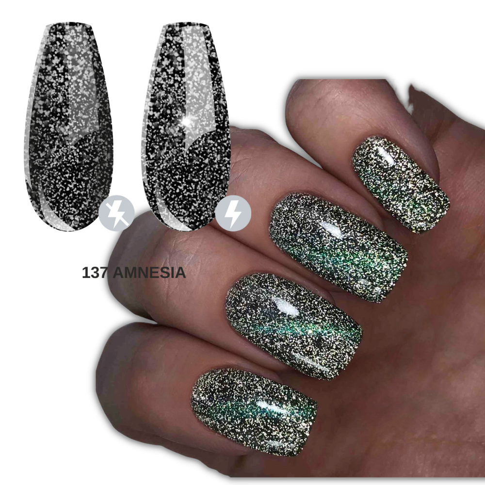 Vernis semi-permanent réfléchissant / très pailleté "Amnesia" 137, noir, 10ml Vernis semi-permanent réfléchissant / très pailleté "Amnesia" 137, noir, 10ml