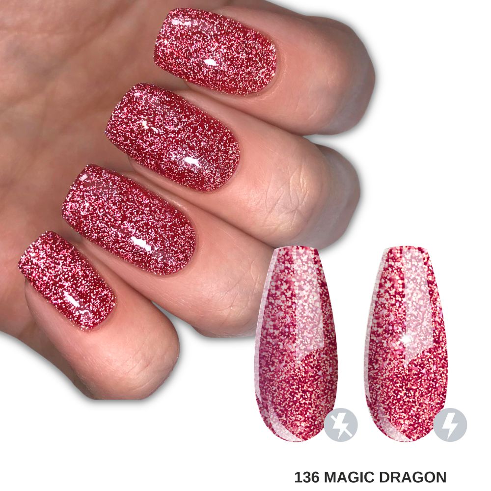 Vernis semi-permanent réfléchissant / très pailleté "Magic Dragon" 136, rouge,